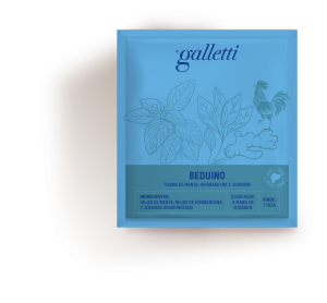Beduino Tisana de menta, hierbabuena y jengibre Ingredientes: Menta, hierbabuena y jengibre Cada caja contiene 10 sobres de frutas y hierbas sueltas. Producido por mujeres campesinas ecuatorianas.