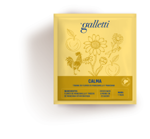 Calma Tisana de flores de manzanilla y manzana Ingredientes: Flores de manzanilla y trozos de manzana deshidratada. Cada caja contiene 10 sobres de frutas y flores sueltas. Producido por mujeres campesinas ecuatorianas.